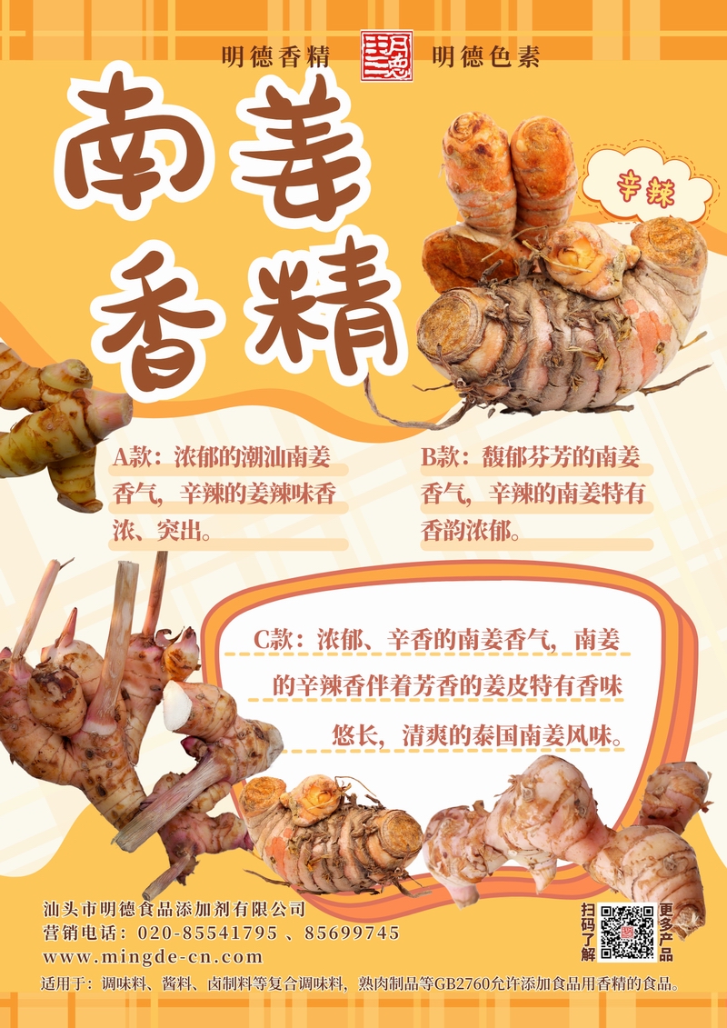 明德南姜香精 辛香鮮明 覆蓋鹵醬腌制與東南亞風(fēng)味汕頭市明德食品添加劑有限公司推出的南姜主題香精,覆蓋多種品類,風(fēng)味真實、留香穩(wěn)定,適用于醬料、腌制料、調(diào)理食品、肉制品、鹵制品、熟肉制品、復(fù)合調(diào)味等B端應(yīng)用。